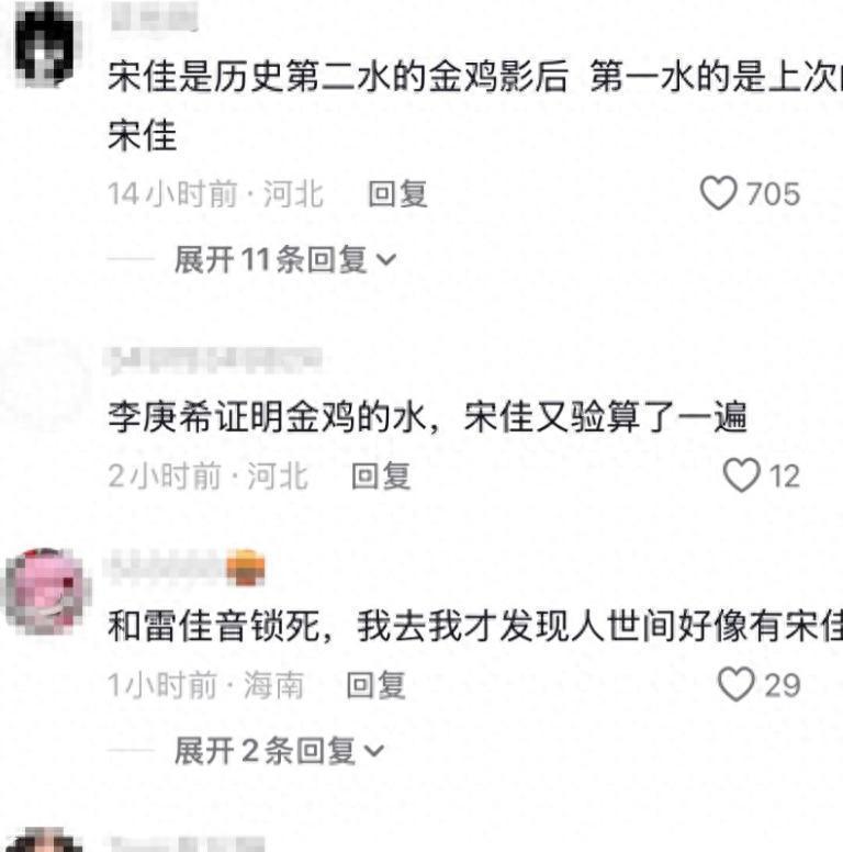 前段时间金鸡奖颁奖,宋佳拿下影后,现场明星都来道贺,网上却炸了锅!不少网友吐槽奖项有水份,直呼 “水鸡奖”,甚至让她还奖杯,说该给真有本事的演员,“靠关系得奖” 的说法铺天盖地,她被架在风口浪尖遭质疑,没回应反倒被说 “心里有鬼”。